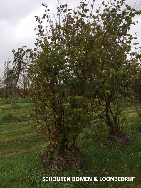 Deze Hazelaar/ Hazelnootboom “Corylus Avellana” is ca. 12 jaar oud. Het is een inheemse meerstammige struik die rond september/ oktober heerlijke hazelnoten geeft. Hazelnoten zijn zowel bij mensen als dieren erg geliefd! Hij heeft kroonvormige bladeren die in de herfst geel verkleuren en daarna in de winter van de boom vallen. In het voorjaar bloeit de struik met gele katjes. We hebben slechts enkele stuks beschikbaar! U bent van harte welkom om de bomen te komen bekijken in onze showtuin!