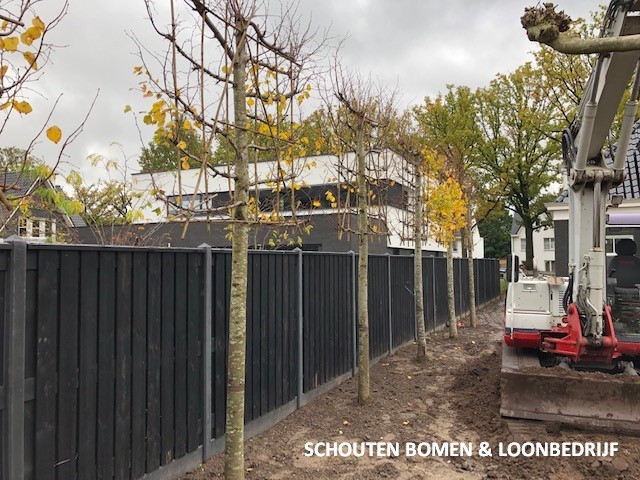 Project: Planten grote Leilinden, een Dakplataan en perenboom in een bak van corten staal in Son en Breugel